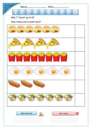 1-    -  Draw / colour the amount of elements indicated by a number.